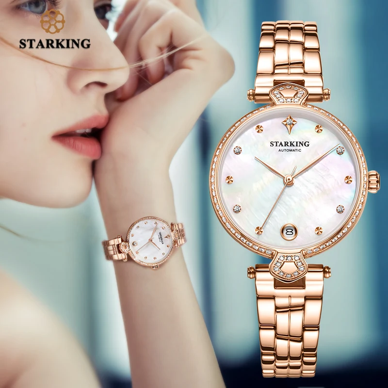 Promo STARKING Luxury Women Watches Rose Gold Stainless Steel Diamond Ladies Watches Gift Automatic Mecha